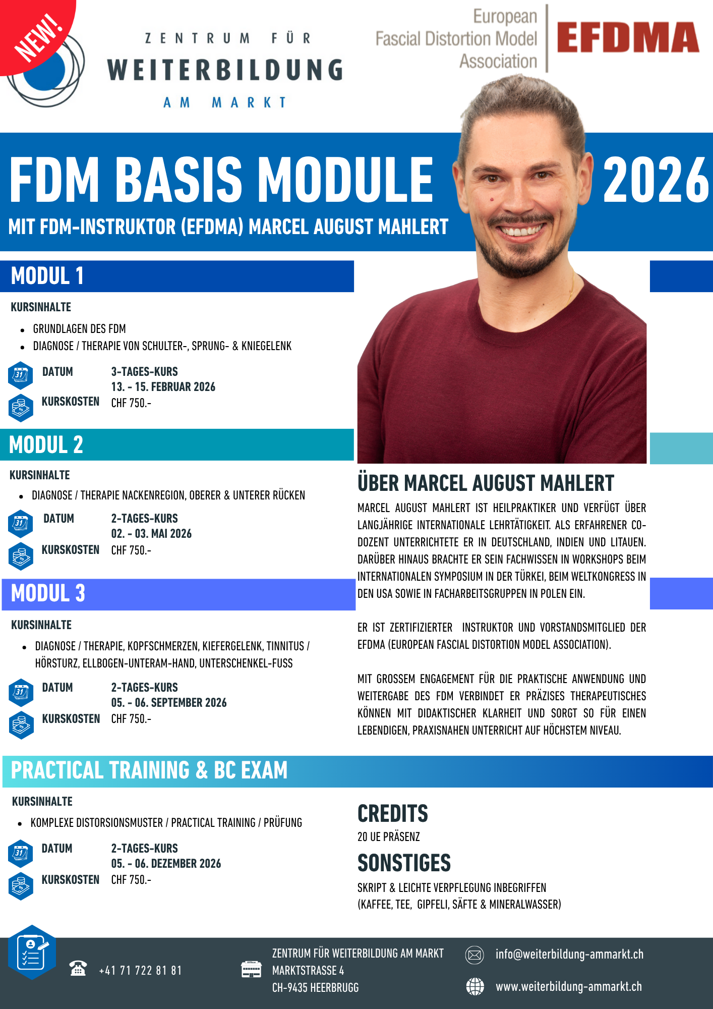 ER IST ZERTIFIZIERTER INSTRUKTOR UND VORSTANDSMITGLIED DER EFDMA (EUROPEAN FASCIAL DISTORTION MODEL ASSOCIATION).